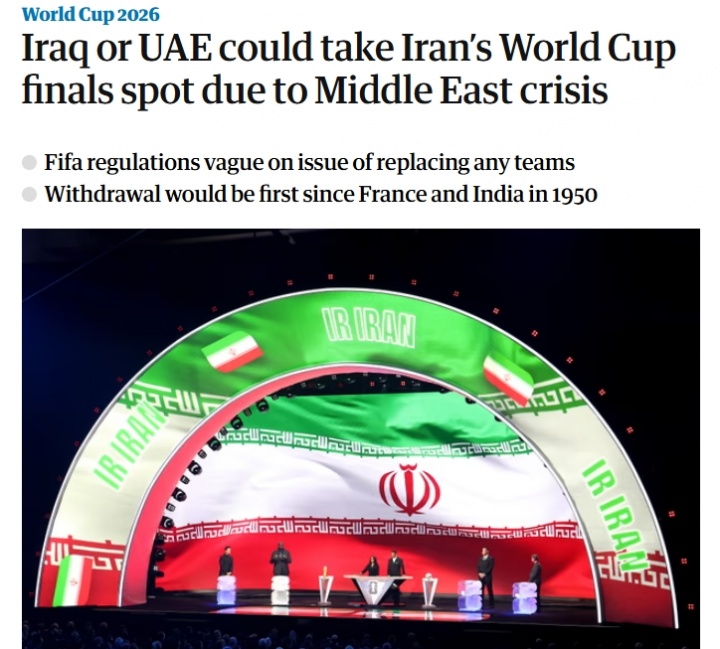 03月03日讯 据《卫报》报道,如果伊朗退出世界杯,伊拉克或阿联酋是最有可能顶替伊朗参赛的球队。